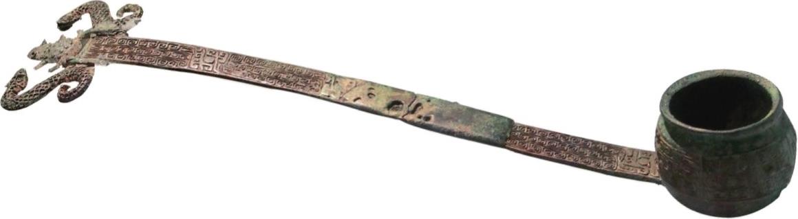 商代器,山西石楼县后蓝家沟出土。斗本用来挹酒,在晋灵公手中竟成杀人工具。《辽史·穆宗纪》:“庚午,以镇茵石狻猊击杀近侍古哥。”是将压席之石镇变作凶器,狂悖无道,亦灵公之俦。