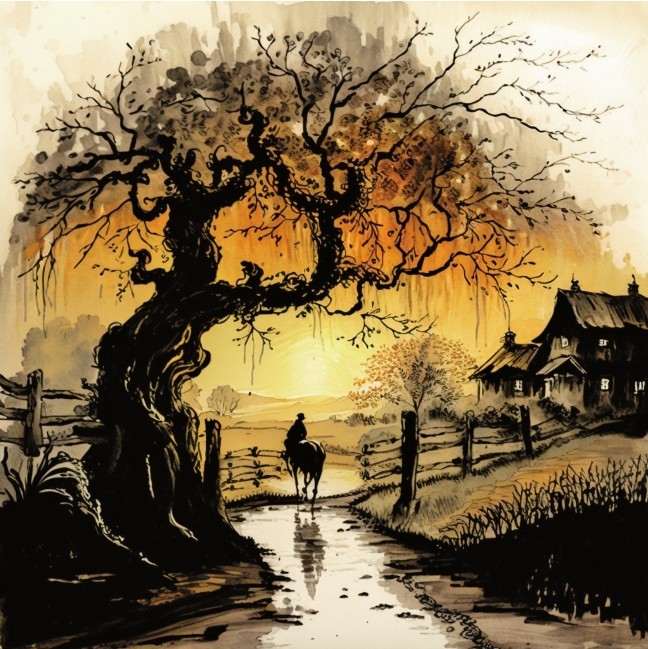 图1.24 ChatGPT生成的《天净沙·秋思》画作