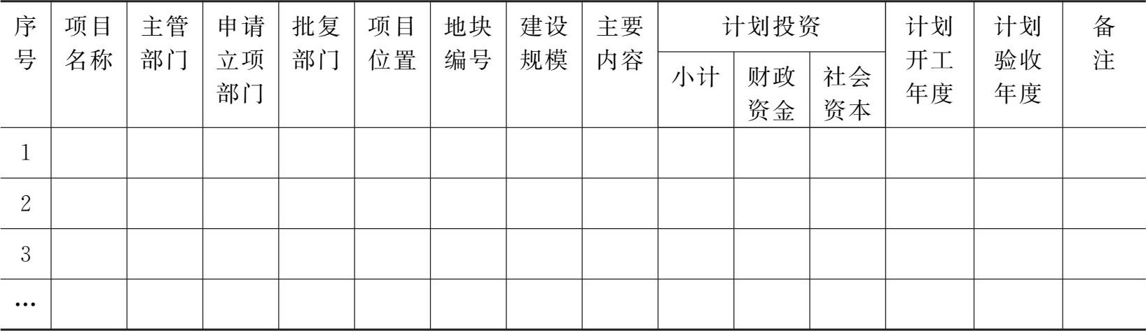 注:1.项目位置具体到村名;2.主要内容填写项目中重点实施的工程;3.本表不涉及军事国防、交通、能源等重大建设项目。
