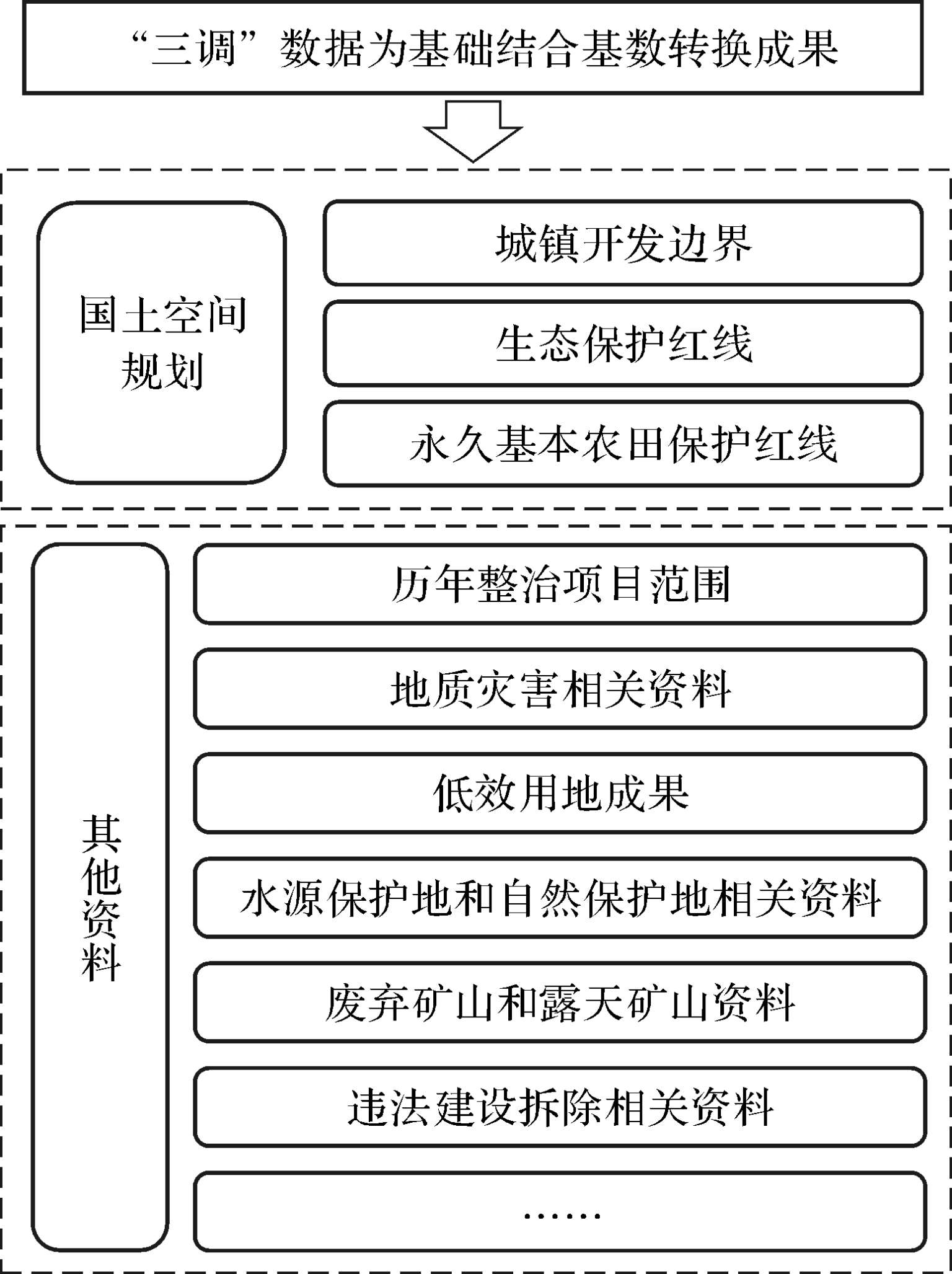 在土地调查及年度土地变更调查数据库的基础上,应用地形地貌、土地利用总体规划、生态环境保护规划、地质灾害防治规划、林地保护利用规划、水环境功能区划分方案、历史文化遗产保护等相关成果,剔除不适合进行土地整治的区域,确定农用地整理潜力、建设用地整治潜力、生态修复潜力三种类型的调查评价对象图层。