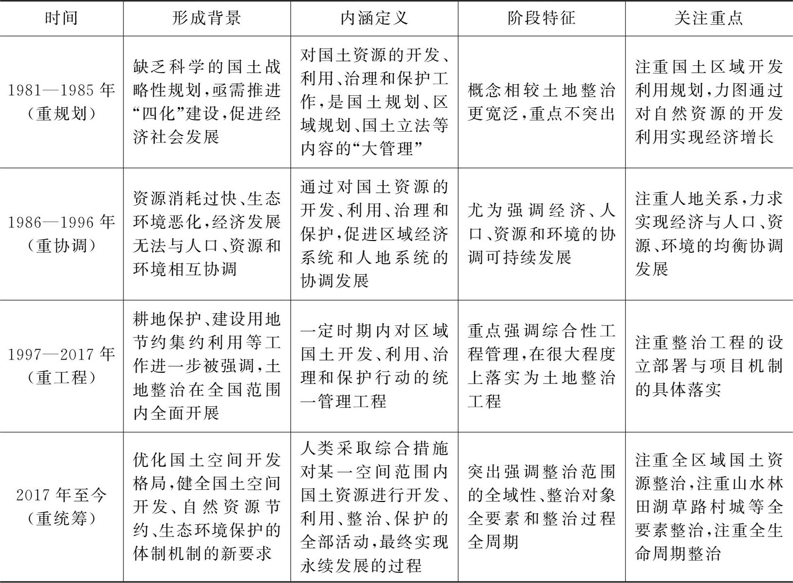 表1.1 国土综合整治近40年内涵发展演变分析