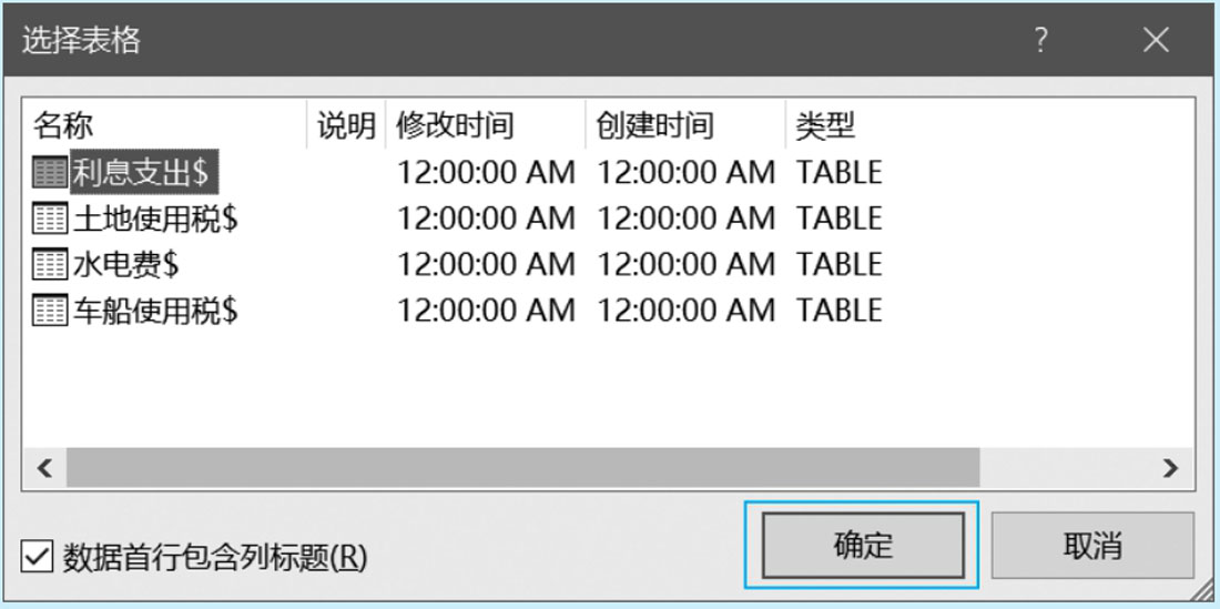 步骤4 单击“打开”按钮,打开“选择表格”对话框,如图2-30所示。