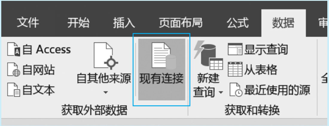 步骤1 选择“数据”→“现有连接”命令,如图2-27所示。
