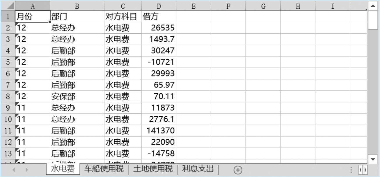图2-26是一个简单的例子,是四种费用的明细表,现在要将这几个表数据汇总到一个工作表上。