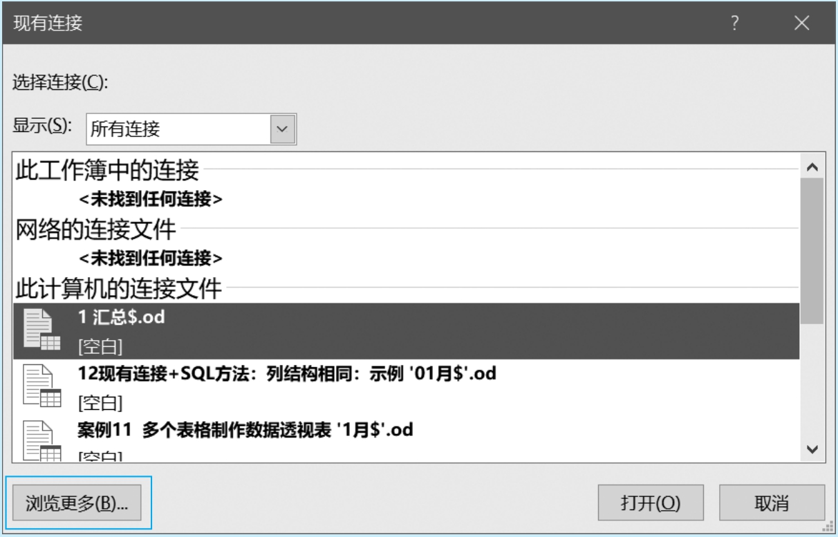 步骤2 打开“现有连接”对话框,如图2-28所示。