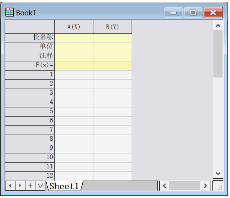 工作簿窗口是Origin最基本的子窗口,其主要功能是存放和组织Origin中的数据,并利用这些数据进行导入、录入、转换、统计和分析,最终将这些数据用于作图。除特殊情况外,图形与数据具有一一对应的关系。