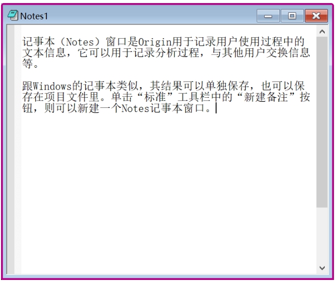 记事本窗口是Origin用于记录用户使用过程的文本信息,它可以用于记录分析过程,与其他用户交换信息等。