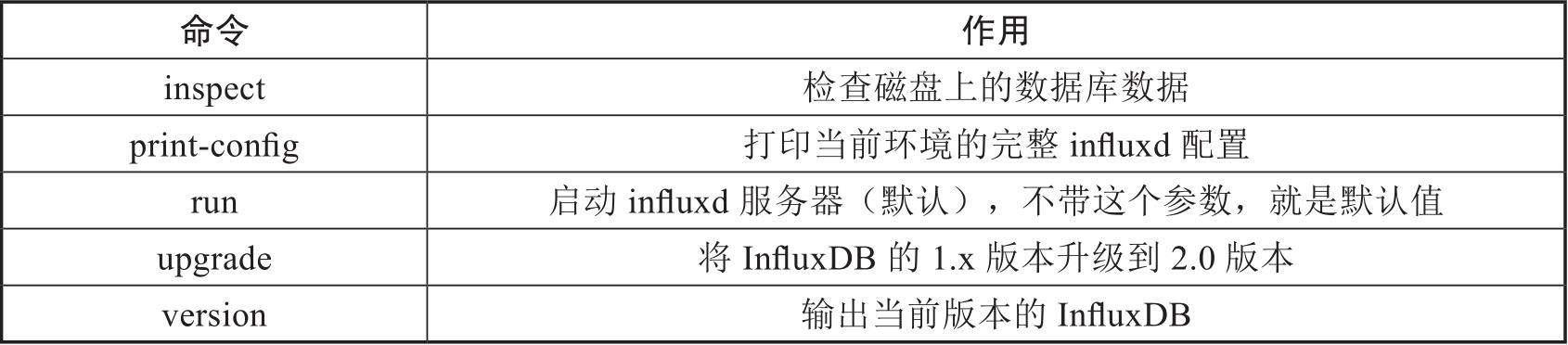 表2-2 influxd的command命令