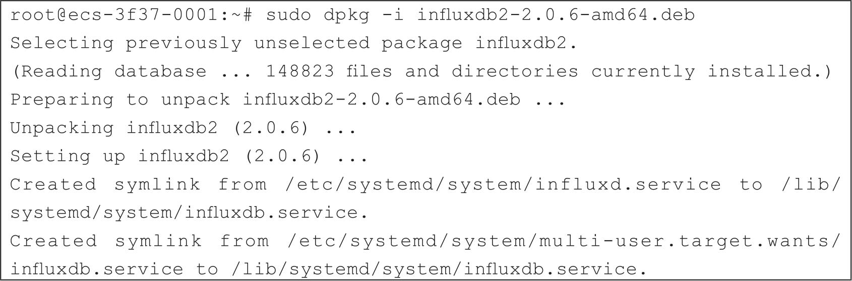 root@ecs-3f37-0001:~# dpkg -l | grep influx ii influxdb2 2.0.6 amd64 Distributed time-series database.