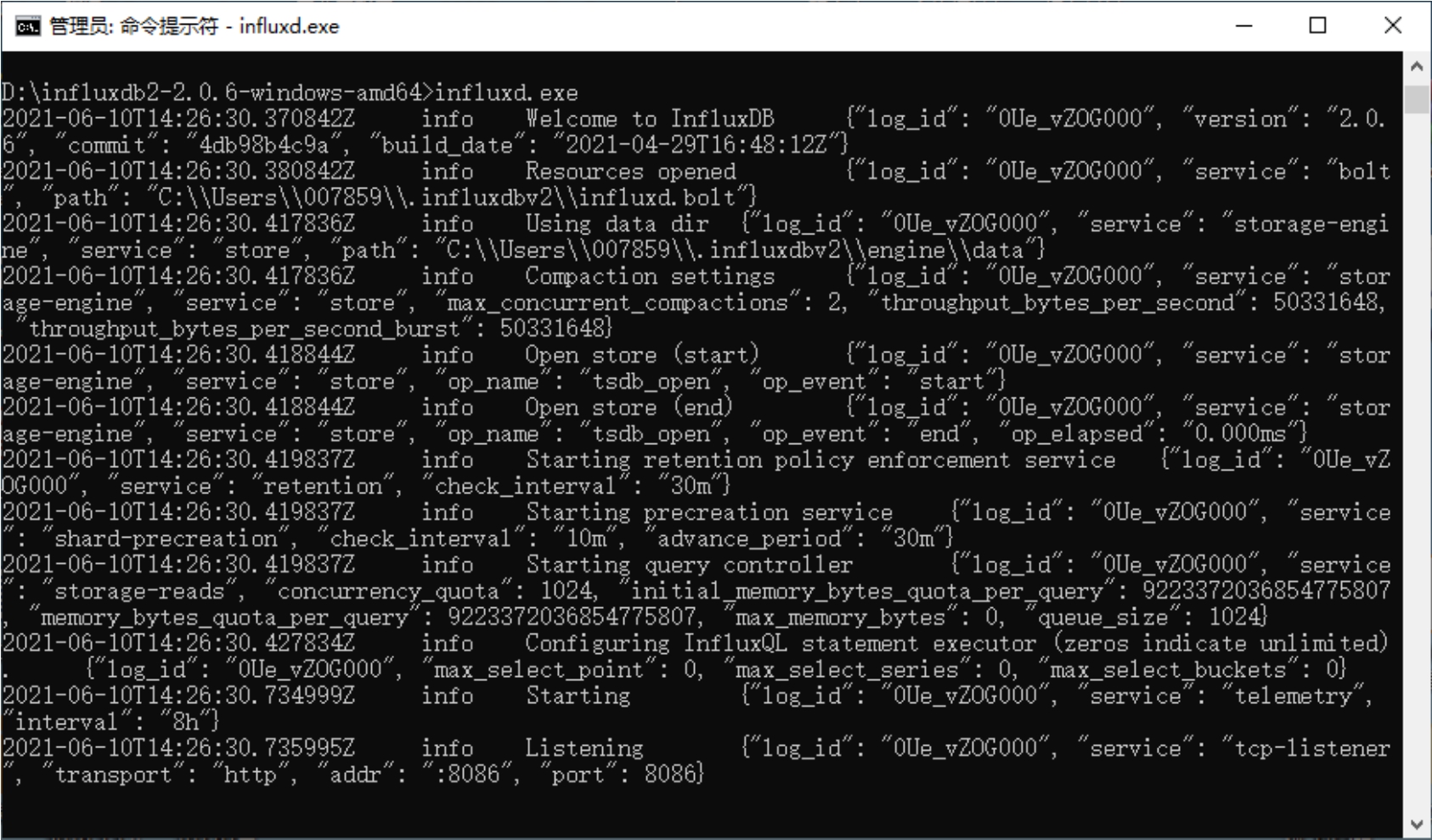图2-4 influxd.exe运行效果