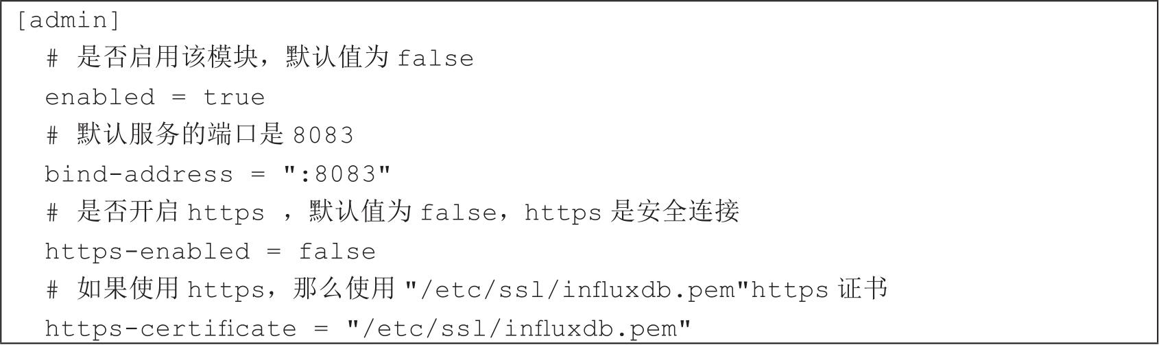 admin web用于InfluxDB的管理页面设置,如代码清单2-47所示。