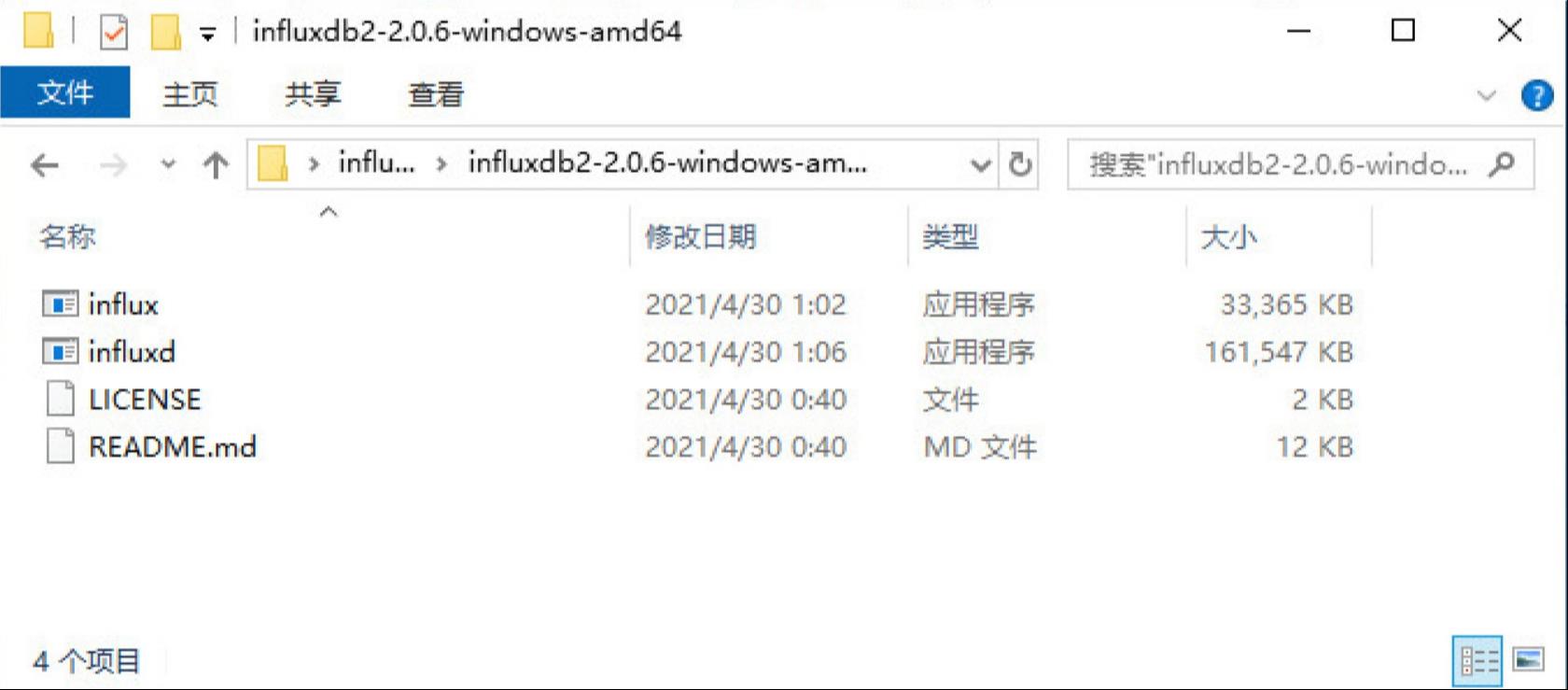图2-5 InfluxDB安装包解压后的效果