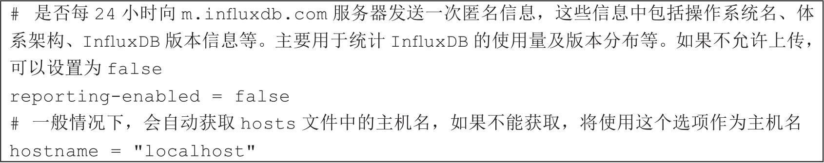 全局信息配置区,用于配置InfluxDB的一些全局信息,如代码清单2-41所示。