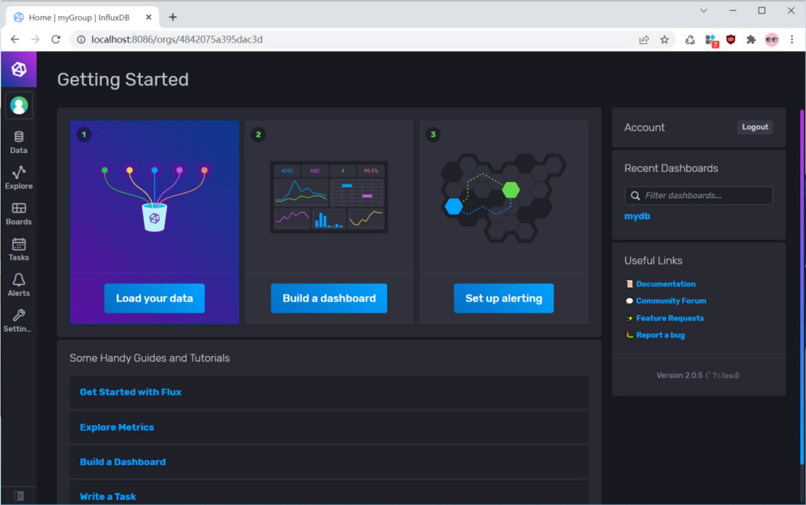 第一种是使用InfluxDB UI界面设置。启动InfluxDB后就可以进入InfluxDB的UI界面,InfluxDB官网提供了两种数据可视化方式,一种是InfluxDB UI,另一种是Chronograf,这两种UI界面在之前章节中有介绍具体的安装和使用方式,这里不再过多述说。