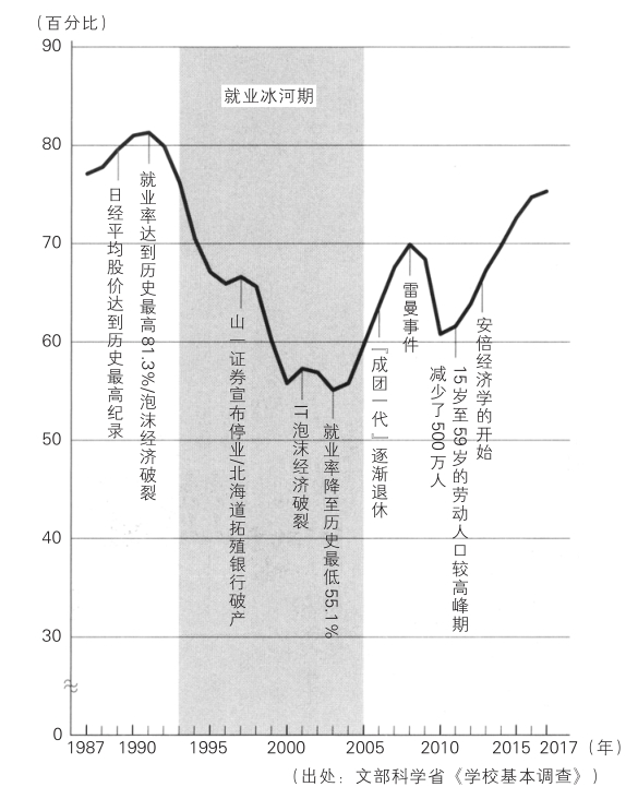 我们可通过文部科学省公布的《学校基本调查》来聚焦就业率的变化趋势。