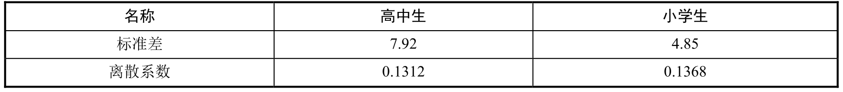 通过计算,得到了高中生和小学生体重的平均值、标准差和离散系数,如表2-3所示。