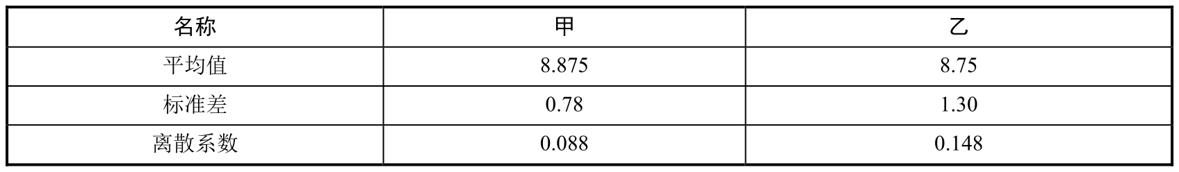 通过计算,得到了甲、乙两名运动员的平均值、标准差和离散系数,如表2-2所示。