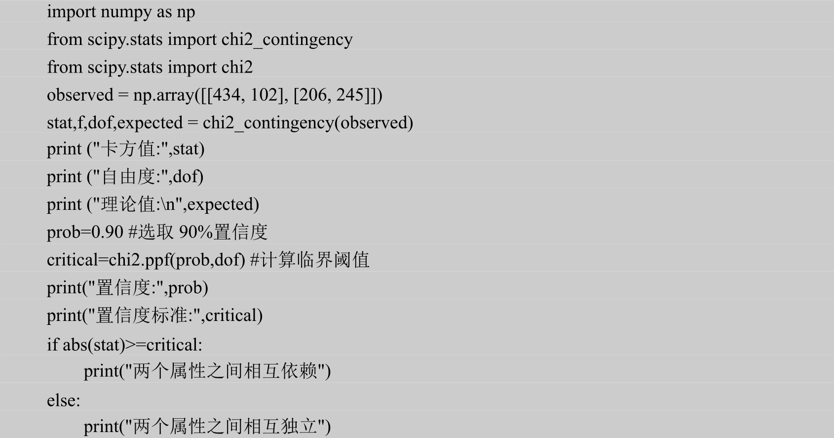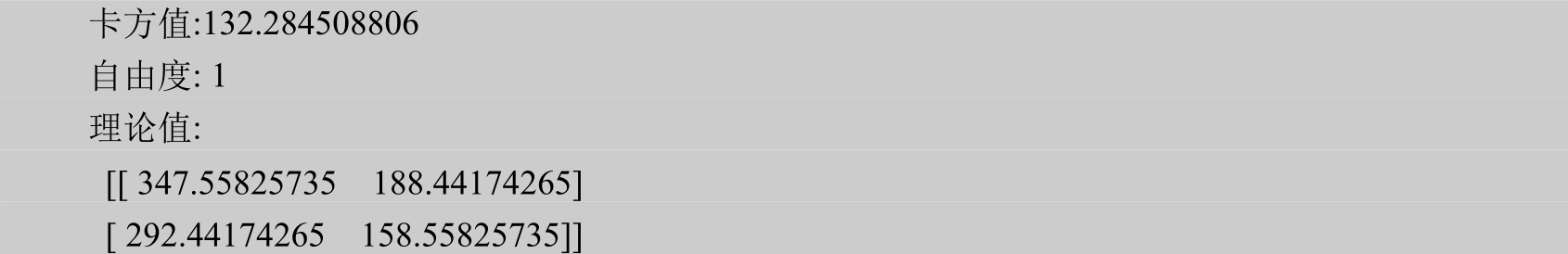 (3)此例置信度确定为90%,查找卡方分布表获得置信度为90%的卡方值是2.706,因为132.44远远大于2.706,所以,性别和线上购买生鲜两者之间是强关联的。