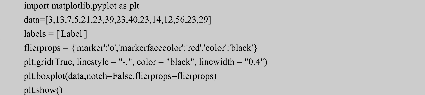【例2-3】已知例2-1中的15个数:3,5,7,12,13,14,21,23,23,23,23,29,39,40,56,使用箱图来直观展示五数概括,如图2-2所示。