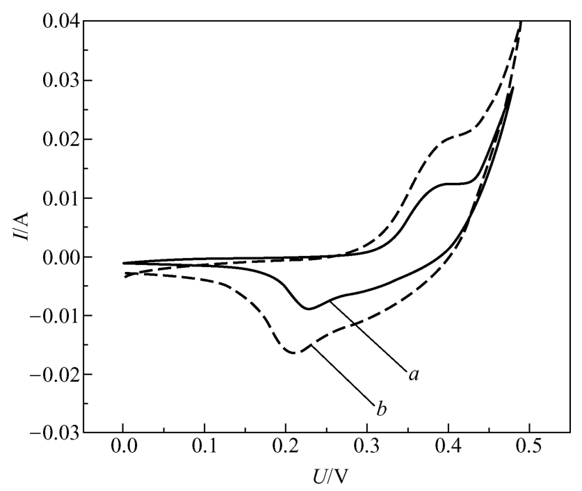 图2-9 氧化镍电极的循环伏安曲线( a =1mV/s; b =2mV/s)
