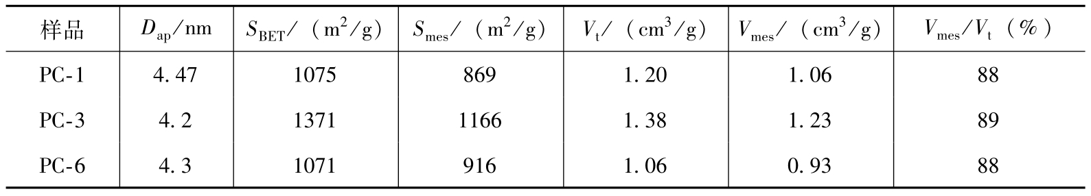2)磷掺杂有序介孔碳(PC-X)的制备:将有序介孔碳CMK-3与磷酸分别以1:1、1:3、1:6的质量比进行混合,首先密封后超声3h,为了实现充分浸渍,将其置于真空条件下静置6h,然后将混合物在100℃下干燥24h。获得的样品进一步在800℃的氮气气氛中碳化1h,升温速率为5℃/min,最后样品用蒸馏水洗涤并在100℃下真空烘干。所得材料命名为PC-X(X代表磷酸与CMK-3的质量比)。