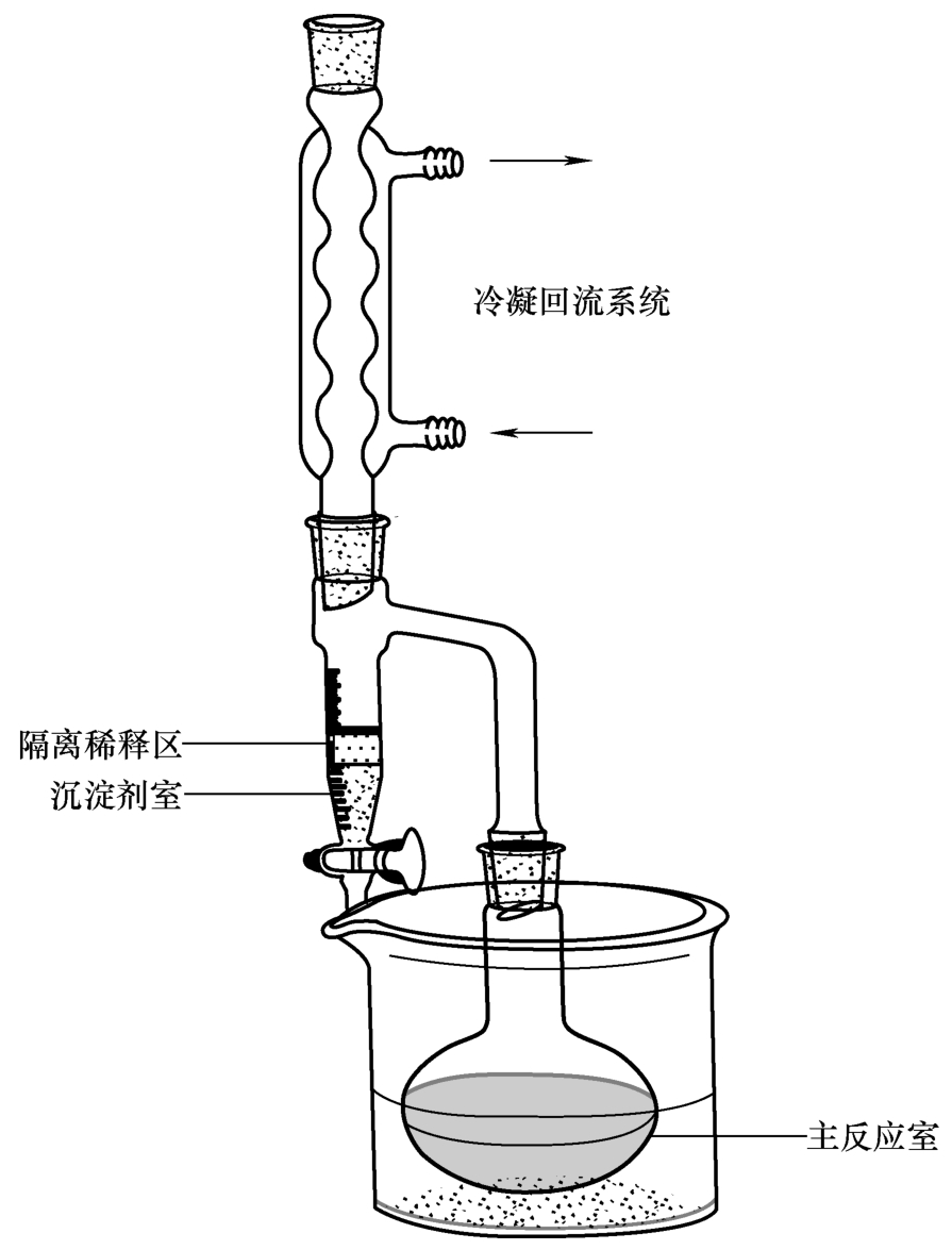 2)水蒸气通过冷凝回流系统进入隔离稀释区,经过隔离稀释区的石英砂得到稀释的沉淀剂溶液。