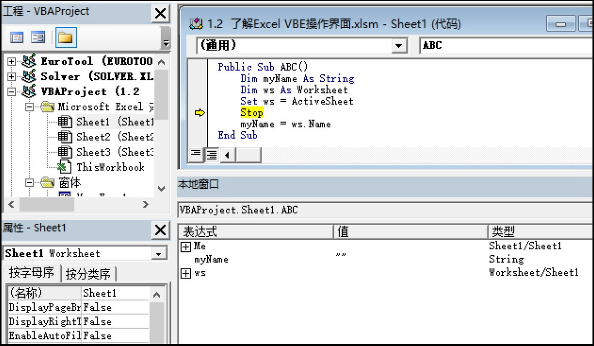 本节介绍Excel VBA的操作界面。