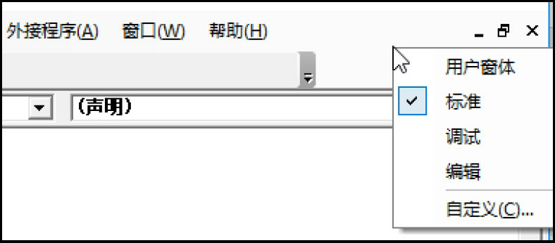 ● 视图:在主应用程序与活动的Visual Basic文档之间做切换。