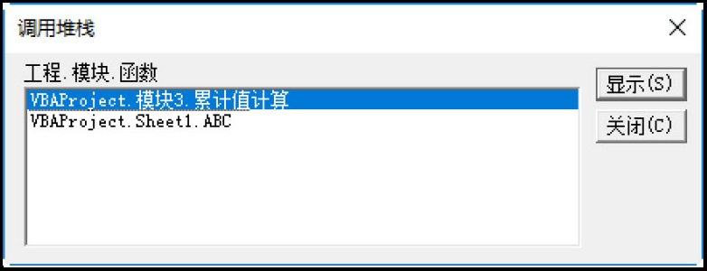 ● 调用堆栈:显示“调用堆栈”对话框,列出当前活动的过程调用(应用中已开始但未完成的过程)。