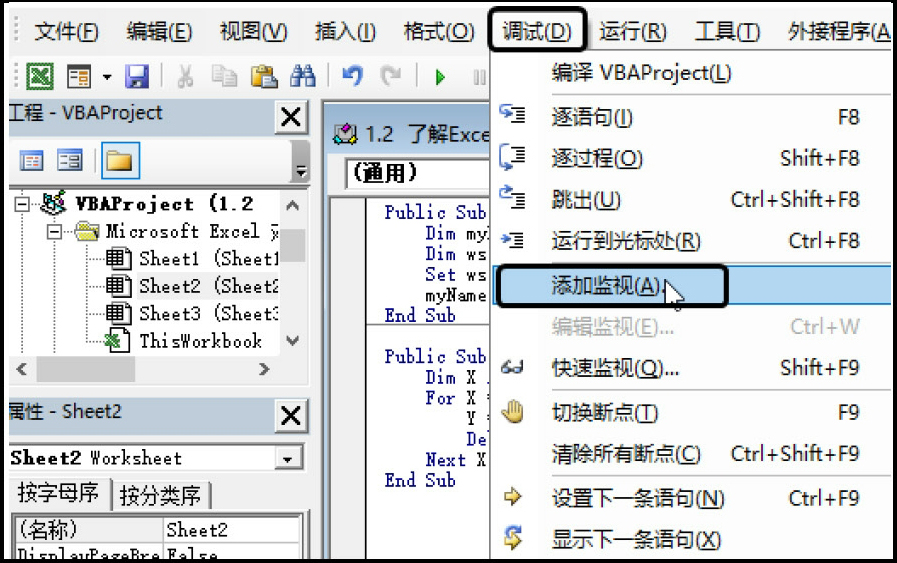 在使用“监视窗口”之前,需要先添加监视的表达式,操作步骤如下:
