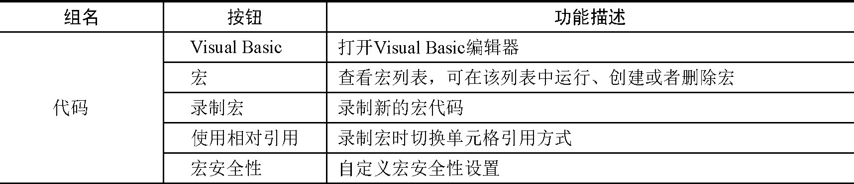 表1-1 “开发工具”选项卡中各选项组的功能描述