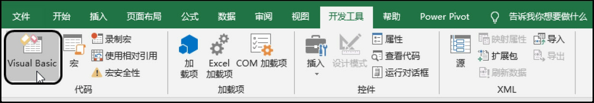 在该选项卡下的“代码”选项组中单击Visual Basic按钮,即可启用VBA界面,如图1-5所示。