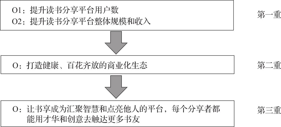 这个O比上面2个O更进了一步,上了一个台阶,“提升用户数”与“提升规模和收入”更深层的目的都是要打造一种商业化生态,而且希望这种商业化生态是“健康”的而非只关注一时得失的,是“百花齐放”的而非一家独大的。然而,对于一个读书分享平台来说,商业化总显得有些“铜臭”气息,追求商业化不应该成为团队的目标,它应该只是团队在满足了用户的知识渴求之后带来的一个自然而然的结果。基于这样的思考,团队负责人又进一步迭代生成了下面的O。