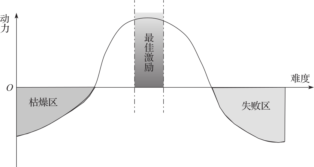 ◘ 有挑战性(incredible): 人们在面对一个难度适中的挑战时动力最充足,这在心理学研究中被称为耶基斯-多德森定律(Yerkes-Dodson law)。 18 依据耶基斯-多德森定律,最佳激励水平位于枯燥乏味和焦虑不安之间的中点,如图2-5 19 所示。