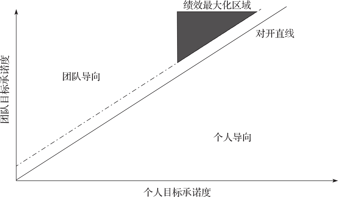 图3-1 团队绩效与目标承诺度间关系