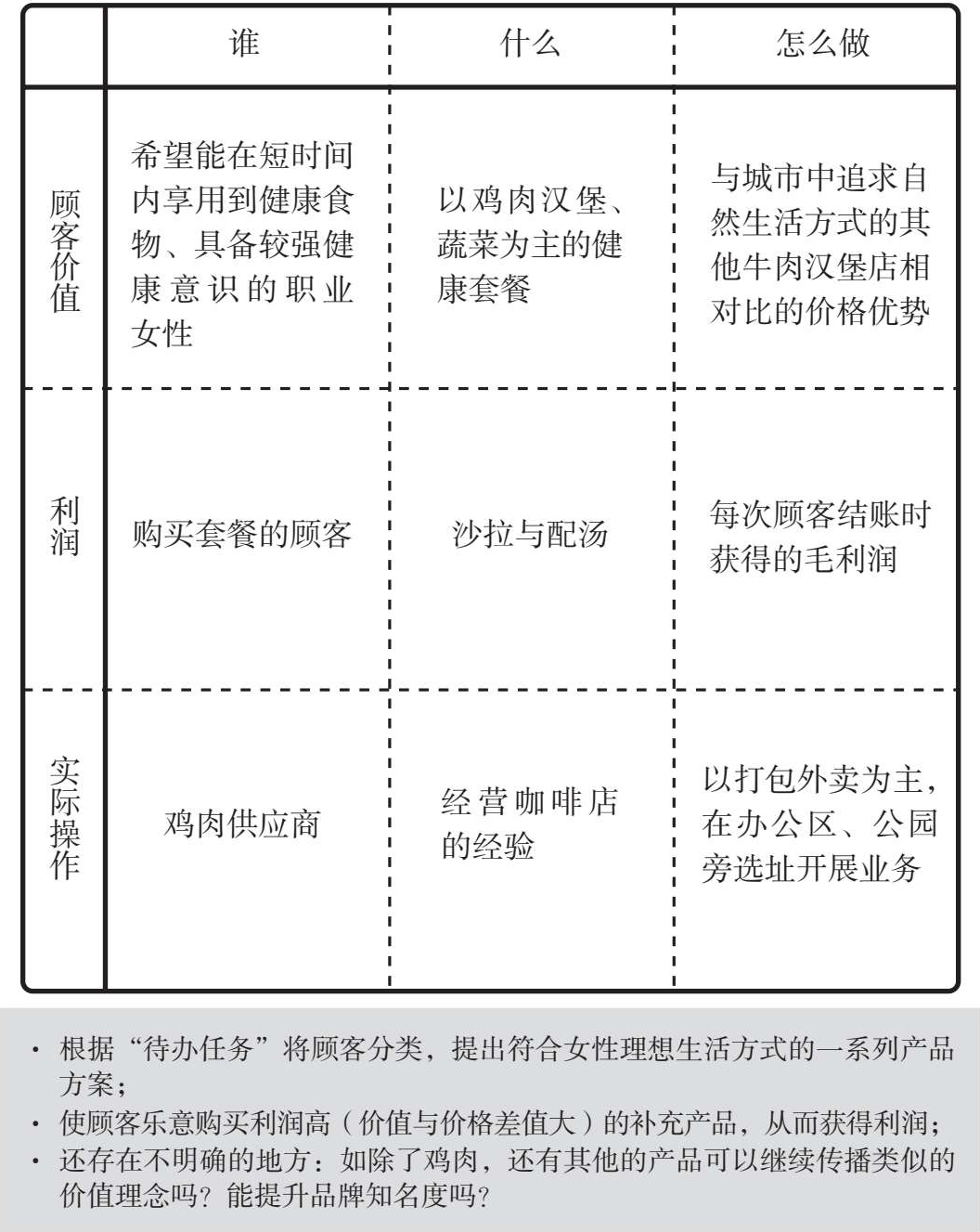 创建盈利机制首先要提出顾客价值方案(Value Proposition),即选定目标人群,并提出此类顾客待办任务的解决方案。这正是帮助我们找到与竞争对手、可替代产品和服务的不同之处的关键所在。