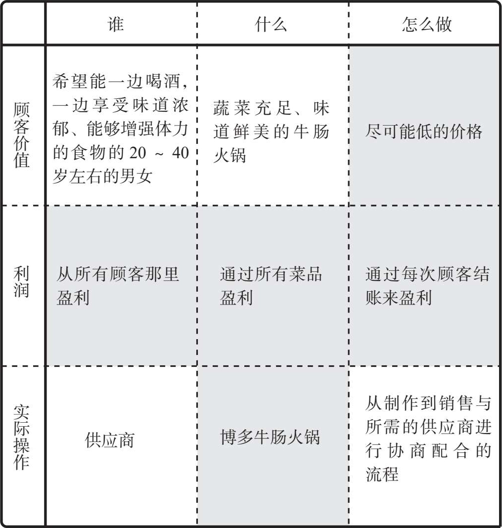由此可见,顾客价值的“谁”和“什么”是表里一体的关系。但无论如何,从这两点出发是构建商业模式最基本的法则,因为公司的目的就是满足顾客。