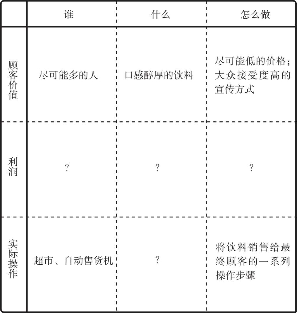 但是,B先生突然想起来,董事长要求他“采取与以往不同的商业模式销售这款饮料”,这也就是说要求B先生要创造一个全新的商业模式。想到这里,B先生不安地叹了口气,陷入一筹莫展的境地。