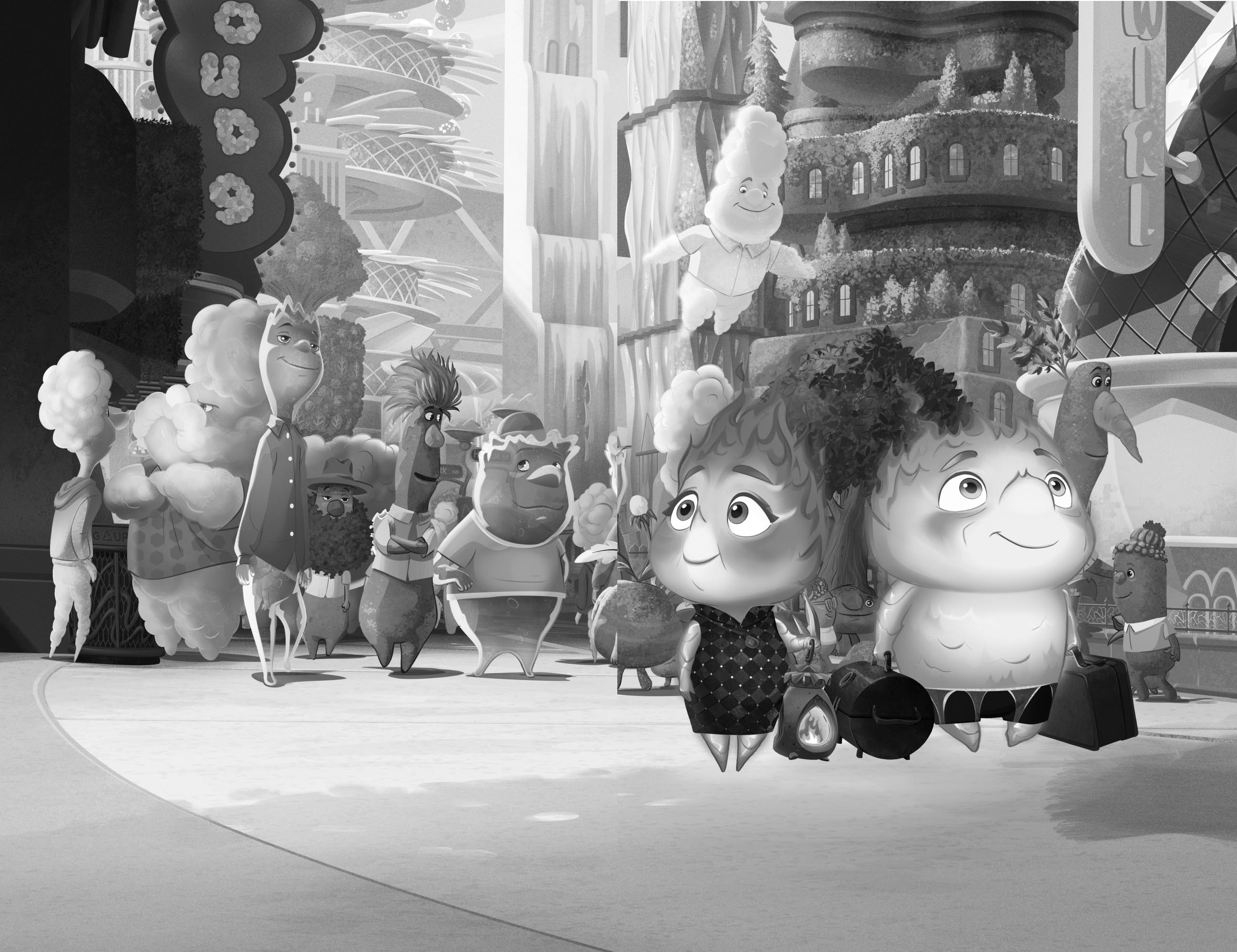 The Fire couple,now known as Bernie and Cinder Lumen,hurried out the doors into the bustling city.As they walked,they gazed at the canals,waterfalls,and giant plants that formed the city’s infrastructure.It looked so different from Fire Land.They were a long way from home.