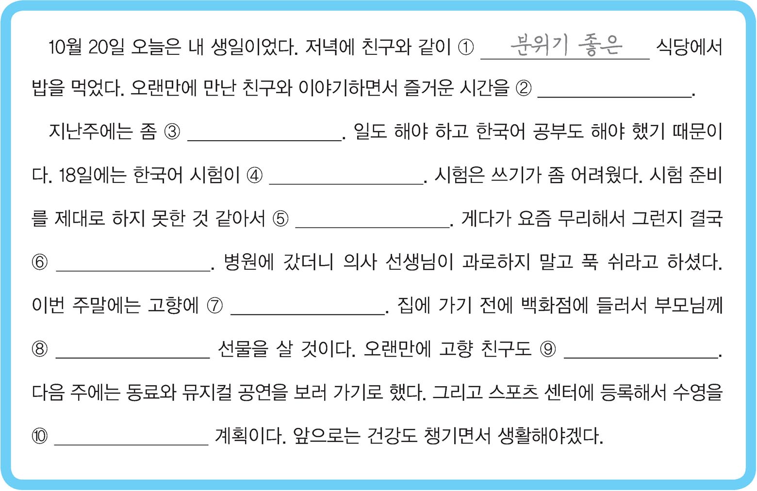 4.우리 학교에서는 매년 한국어말하기대회를__________________.