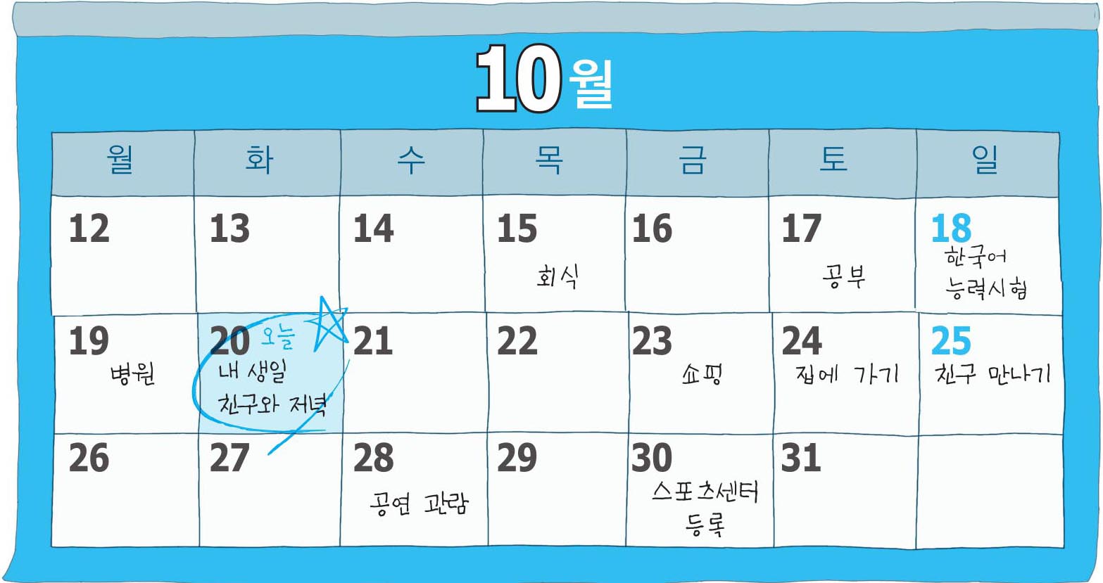 아래 달력을 보고 시제에 맞게 문장을 완성해 보세요.