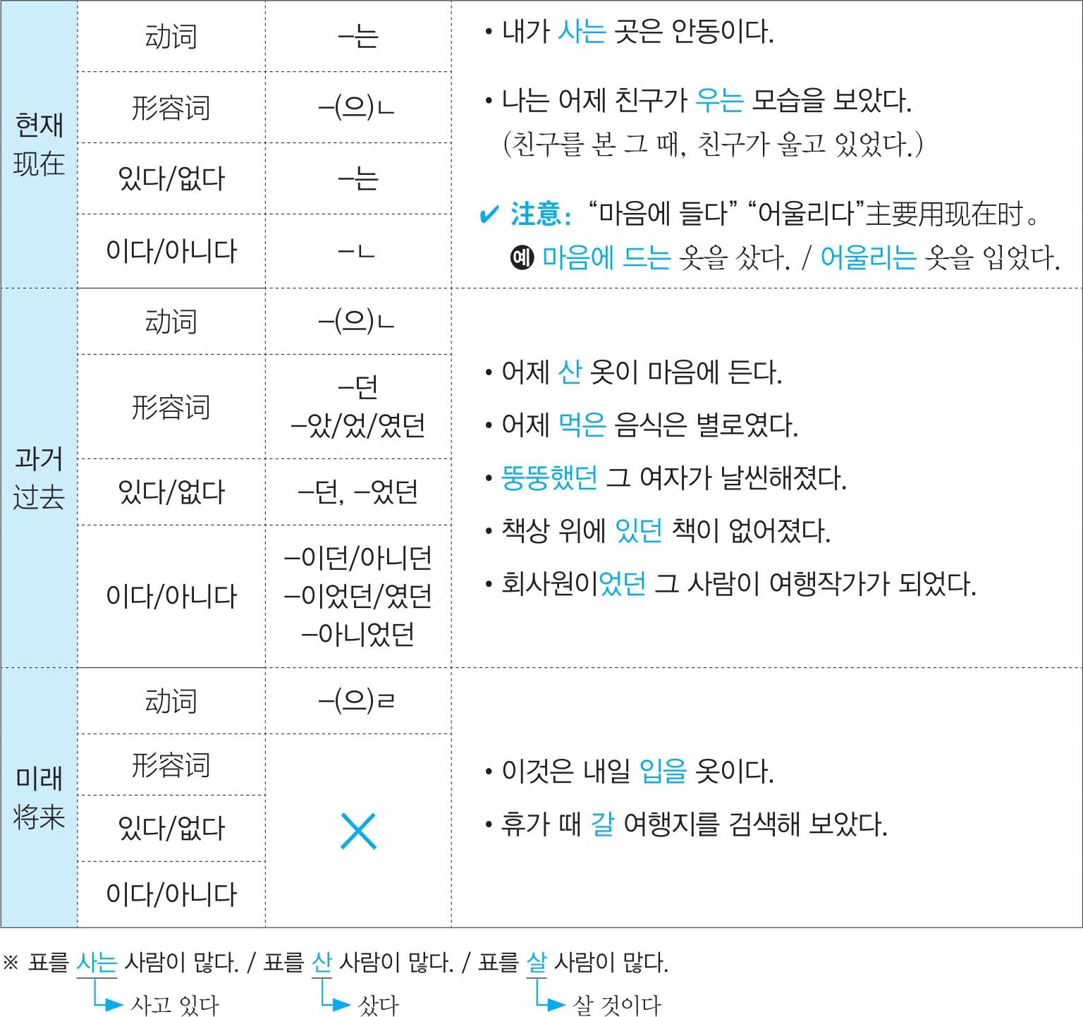 알아봅시다 2 관형사형 시제 冠形词形时态