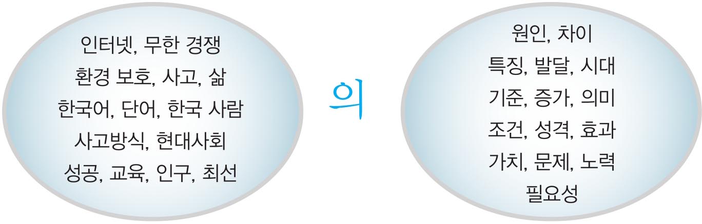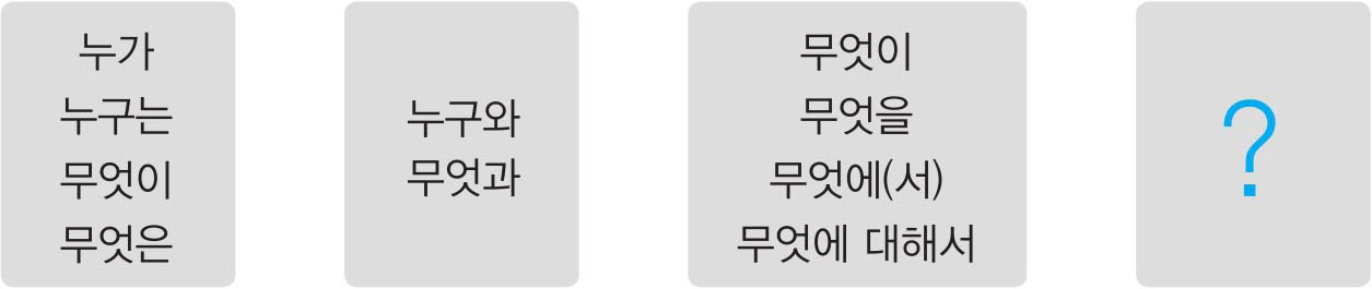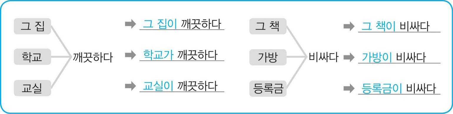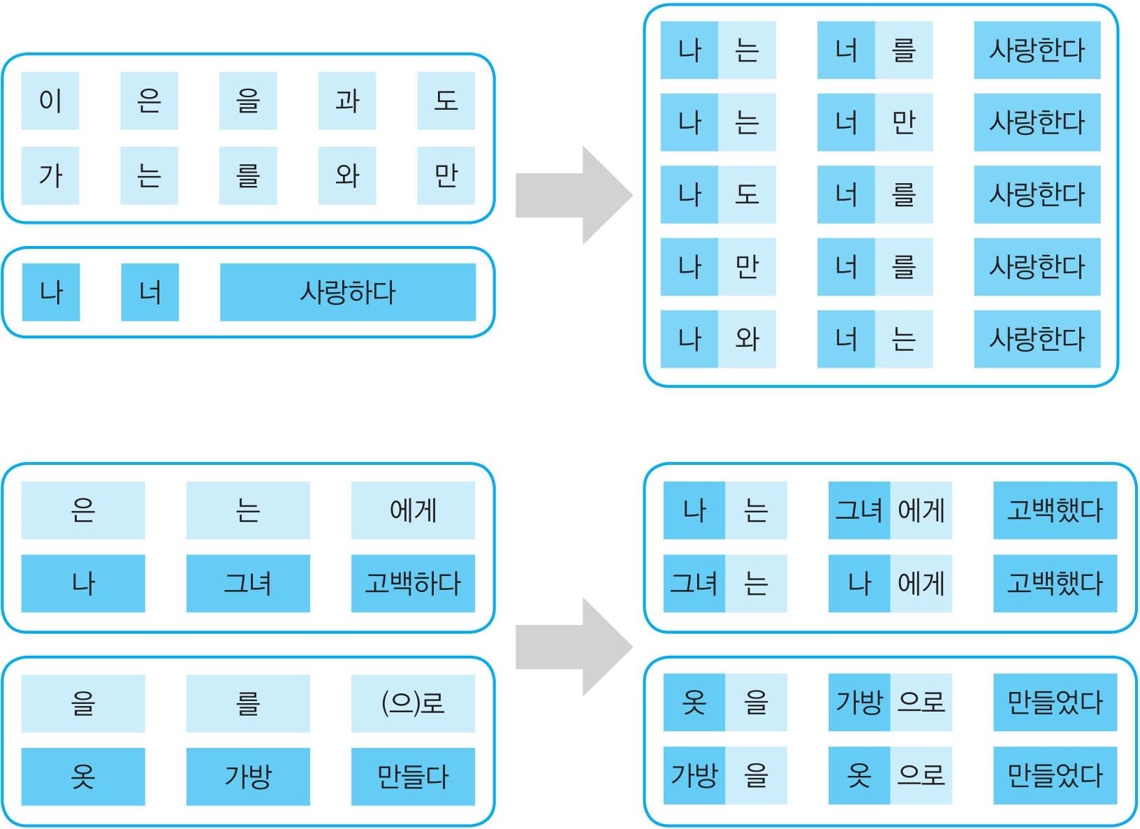 다음은 단어와 조사로 만든 문장들입니다.어떤 차이가 있는지 생각해 봅시다.
