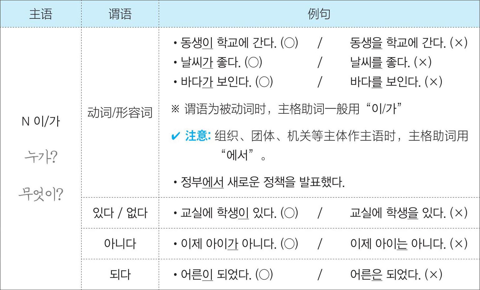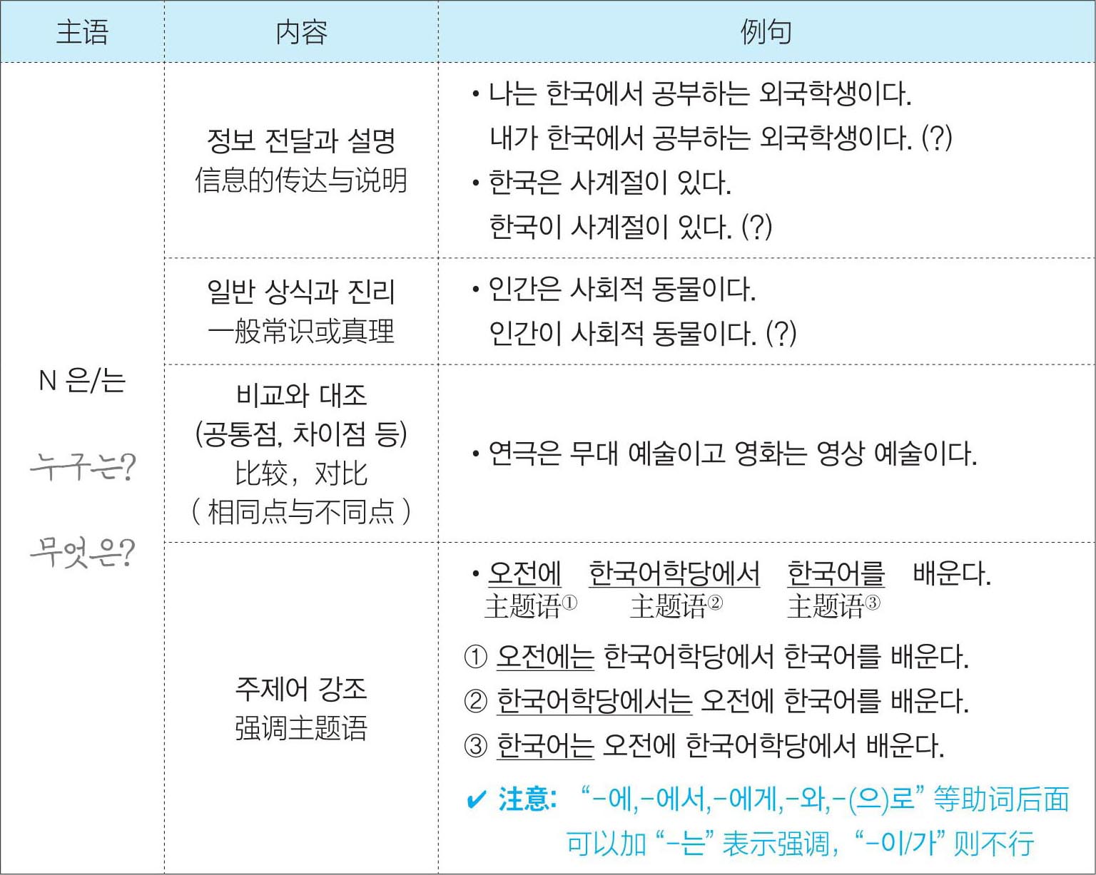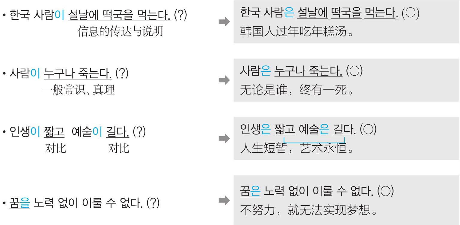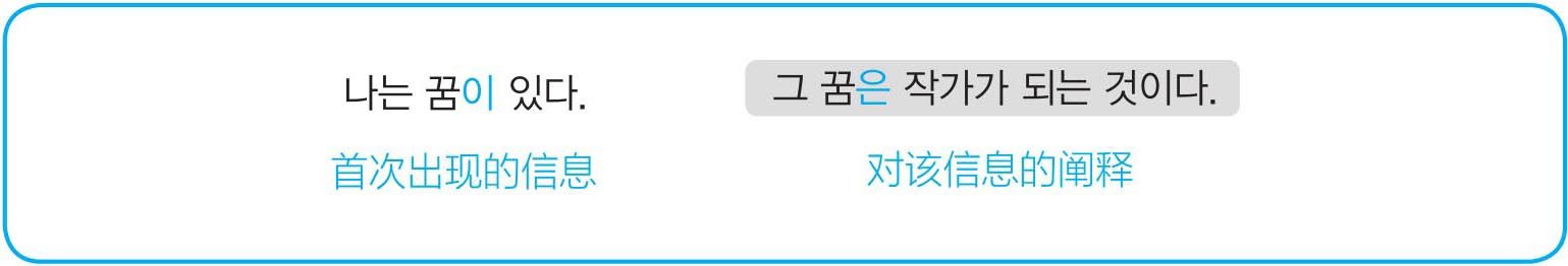 4.首次出现的信息用“이/가”,对该信息进行阐释时用“은/는”