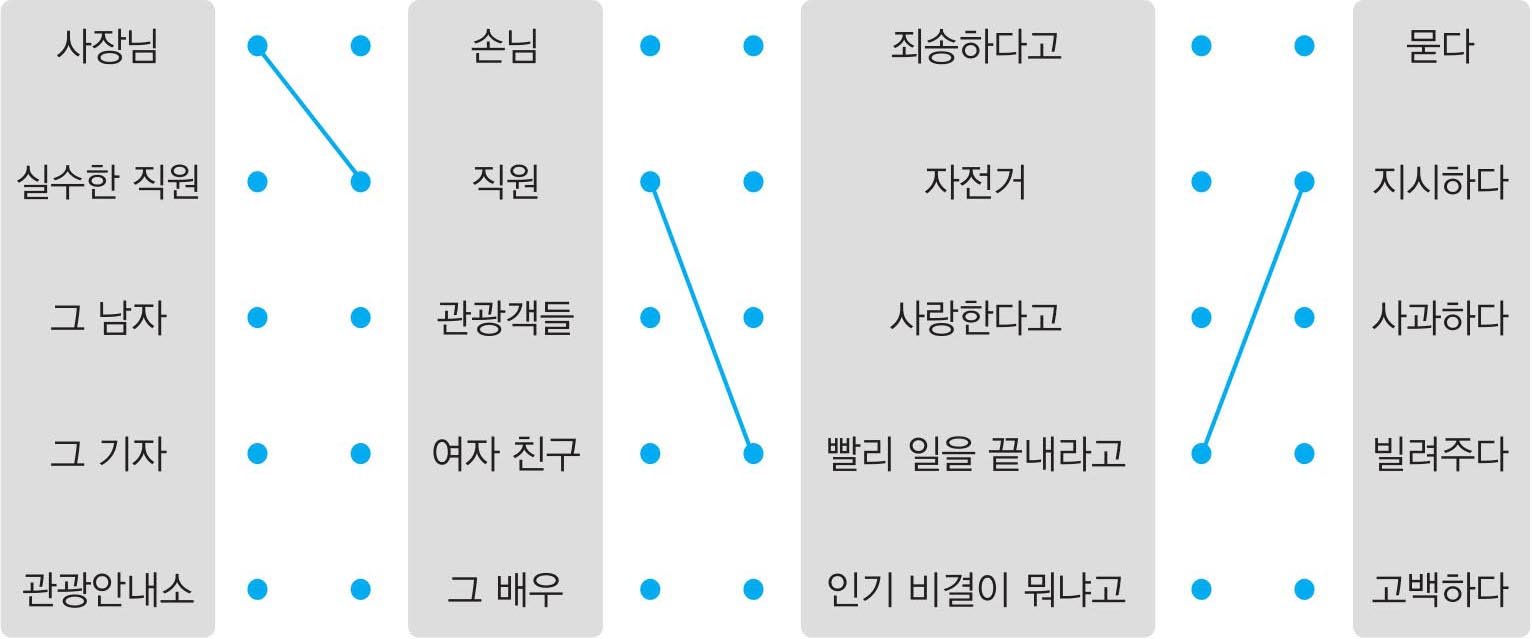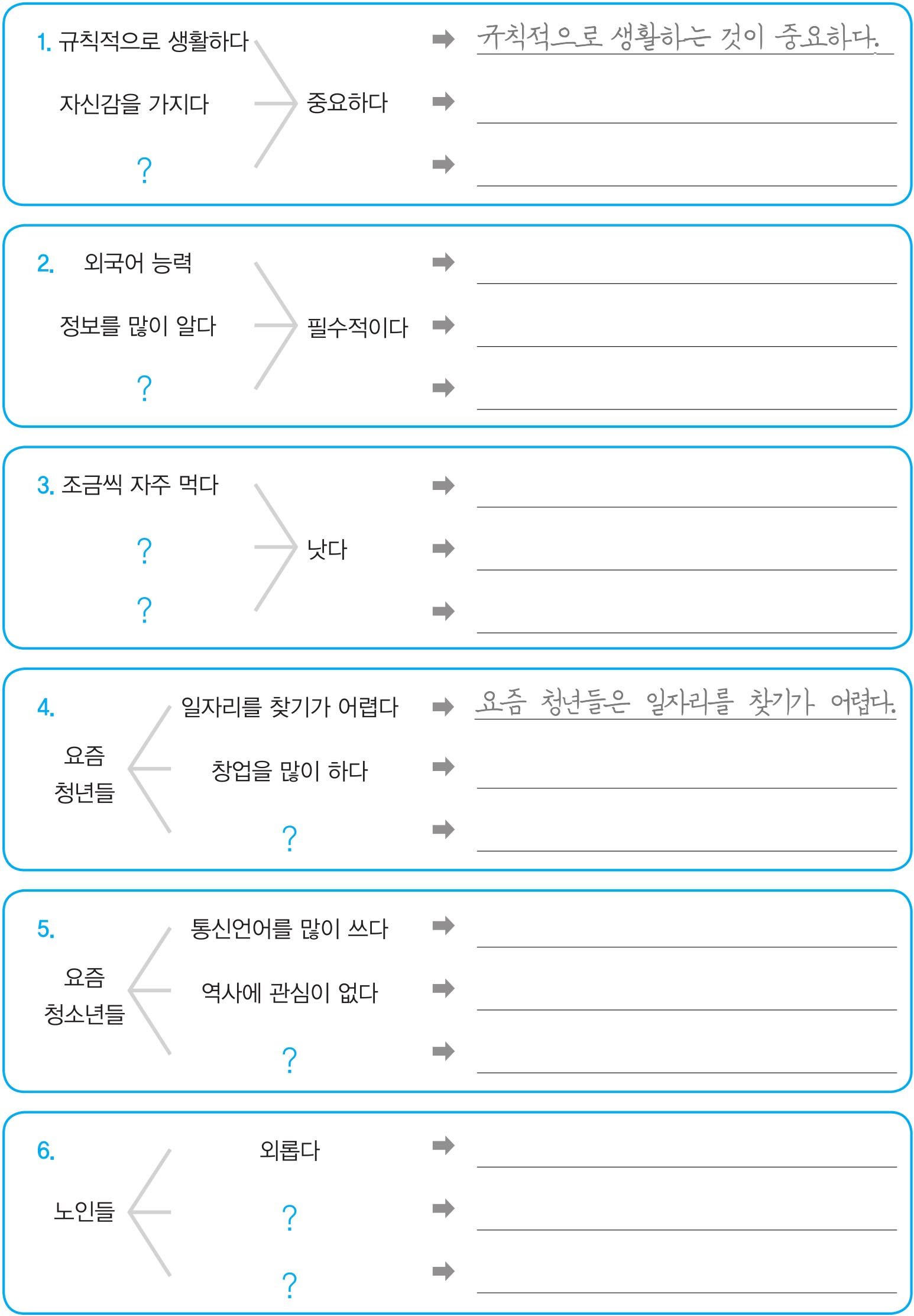 8.노인들/ (청년들/양보하다) /바라다  ➞ ___________________