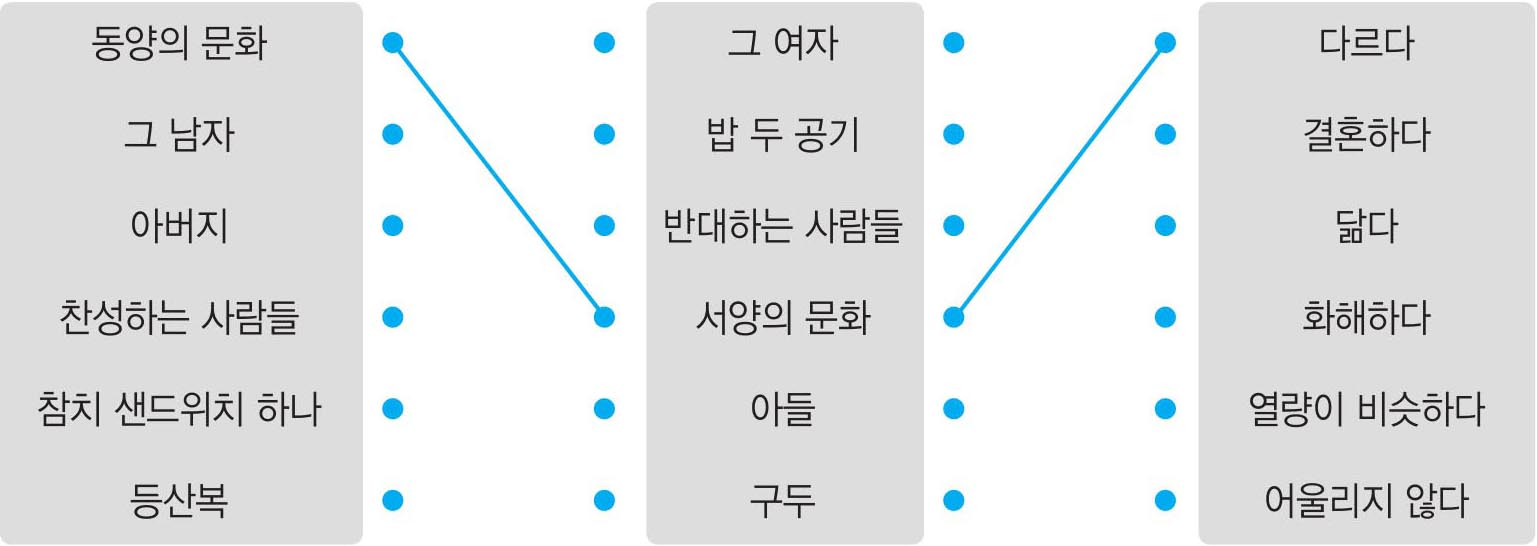 알맞은 조사를 써서 한 문장으로 만들어 보세요.
