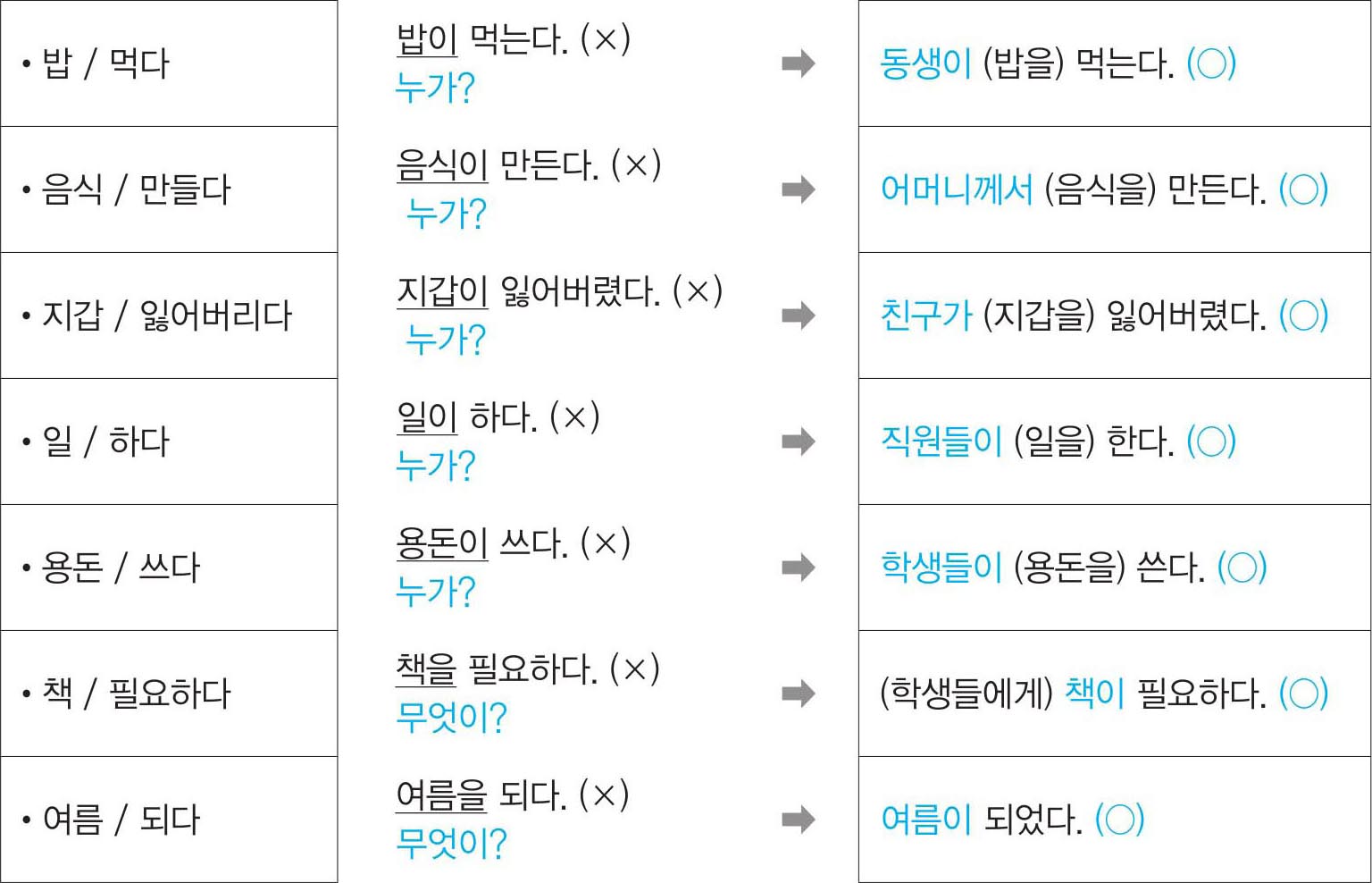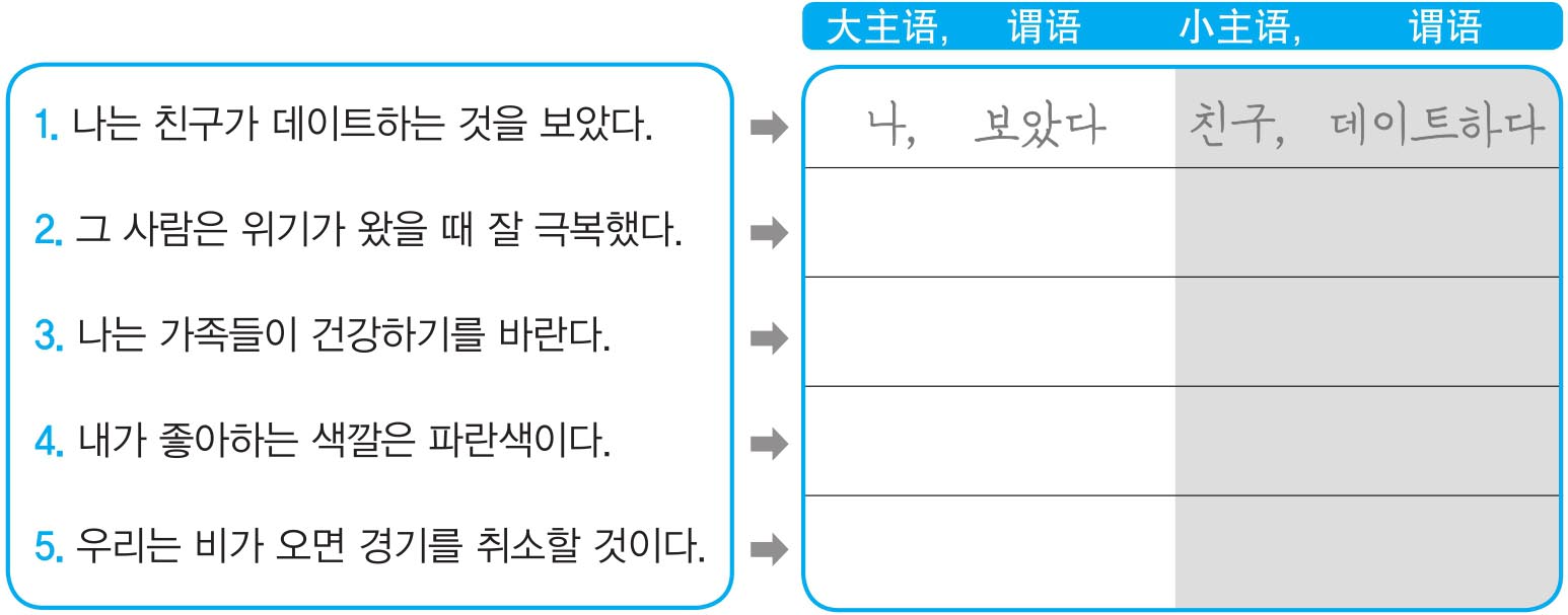 작은 문장의 주어 ‘이/가’ 에 주의하면서 문장을 만들어 보세요.