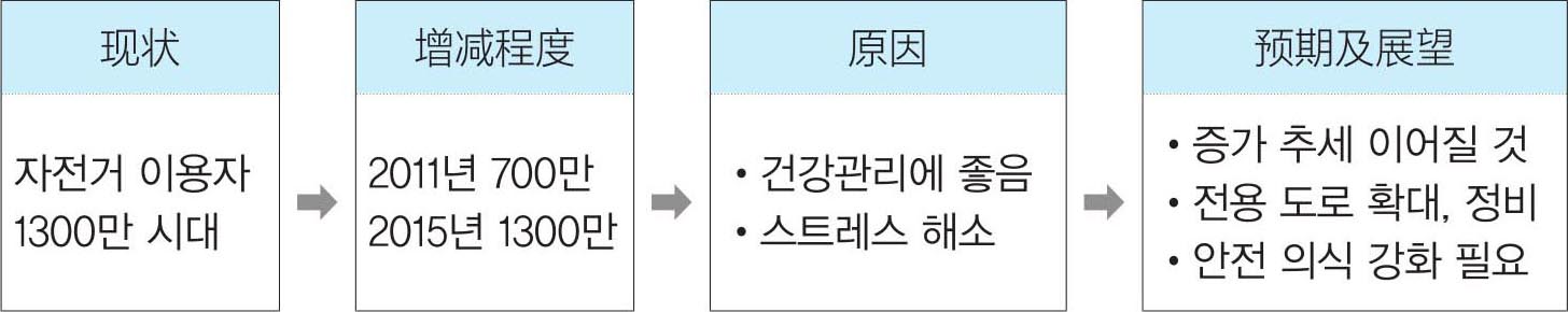 10.자전거 이용 인구 급증.  ➞ ________________________