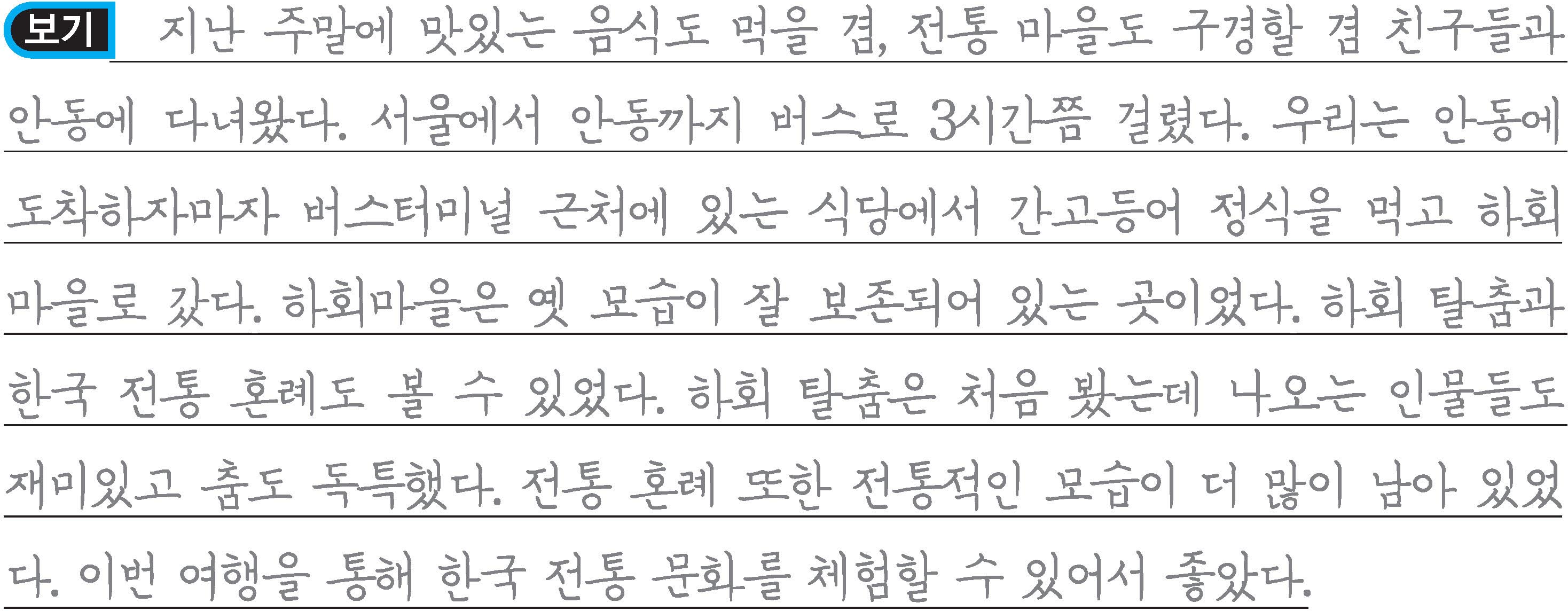 여러분은 여행을 좋아하십니까? 여러분이 여행한 곳을 [보기]와 같이 써 보세요.