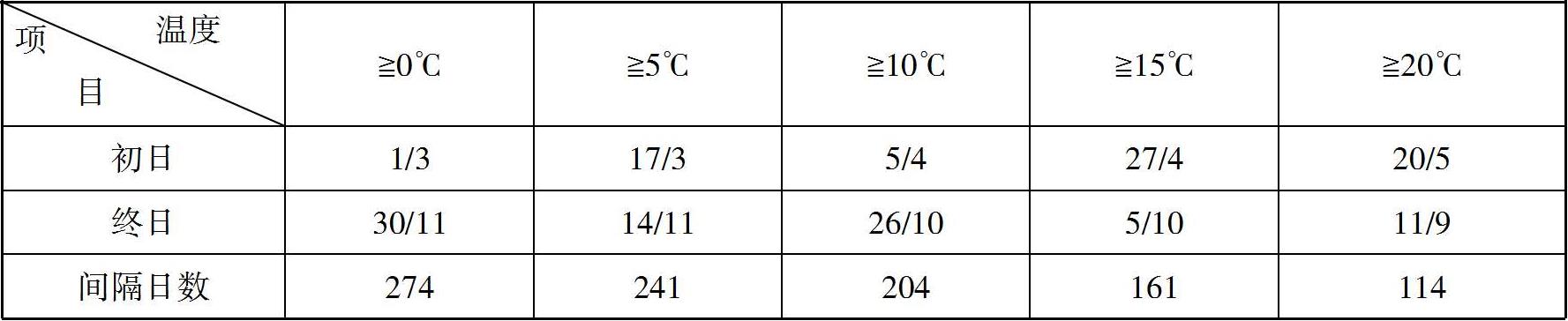 表2-2 清辉头村各气温段(每5℃)初日和终日情况(单位:日/月)